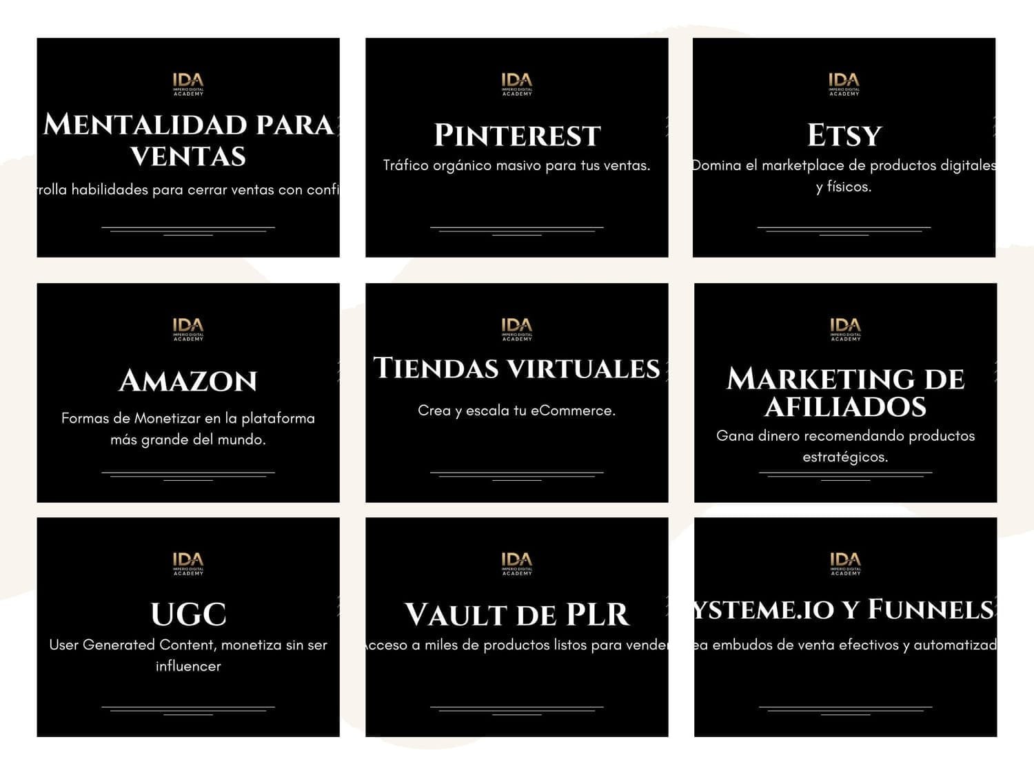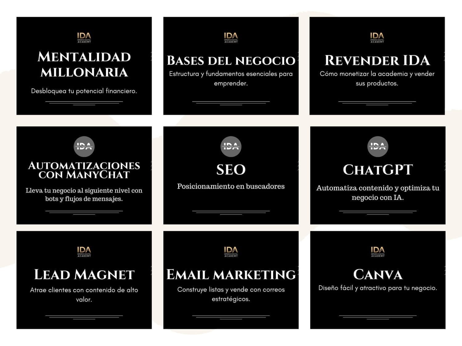No ofrecemos reembolsos, ya que IDA – Imperio Digital Academy es una plataforma digital y el acceso a nuestros productos es inmediato tras la compra. Te recomendamos revisar toda la información detenidamente antes de adquirirlo.
